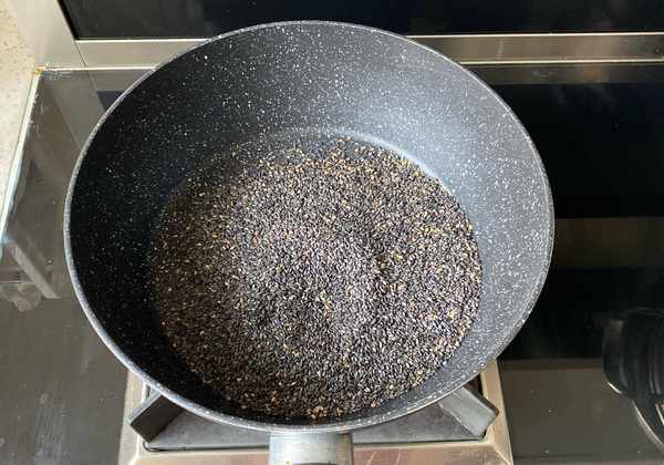 3、烤花生的時候,把黑芝麻上鍋小火炒熟,備用。黑芝麻和花生我這次用的時候,都是提前烤熟的,這兩個步驟是給大傢看得,有的朋友不會做。