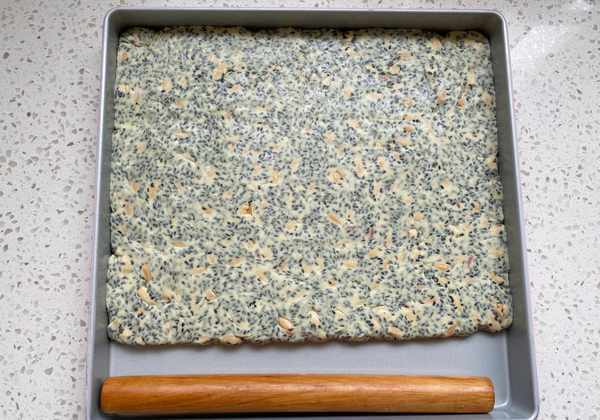 12、用搟面杖搟平,和烤盤持平就可以。