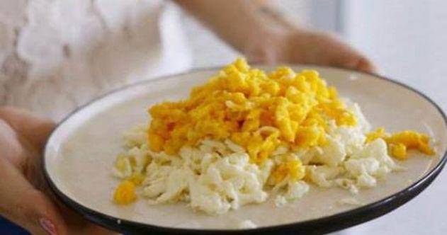 6.將蛋清放進鍋內翻炒,炒松散後放入蛋白入味