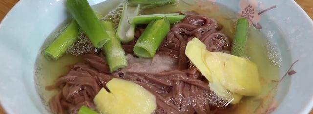 5.起鍋燒水,水開後把醃制好的腰絲放進去煮熟,焯水後的腰絲撈出來瀝幹放入碗中(裡面的薑蔥全部都不要),給腰絲調味一點鹽,白糖,醬油,雞精攪拌均勻;
