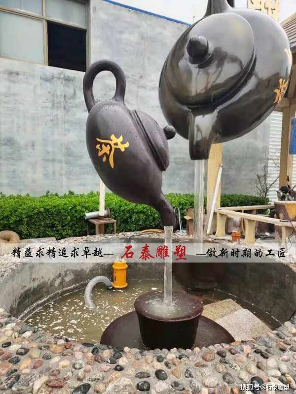 戶外大型水景雕塑,茶文化小品,玻璃鋼天壺雕塑