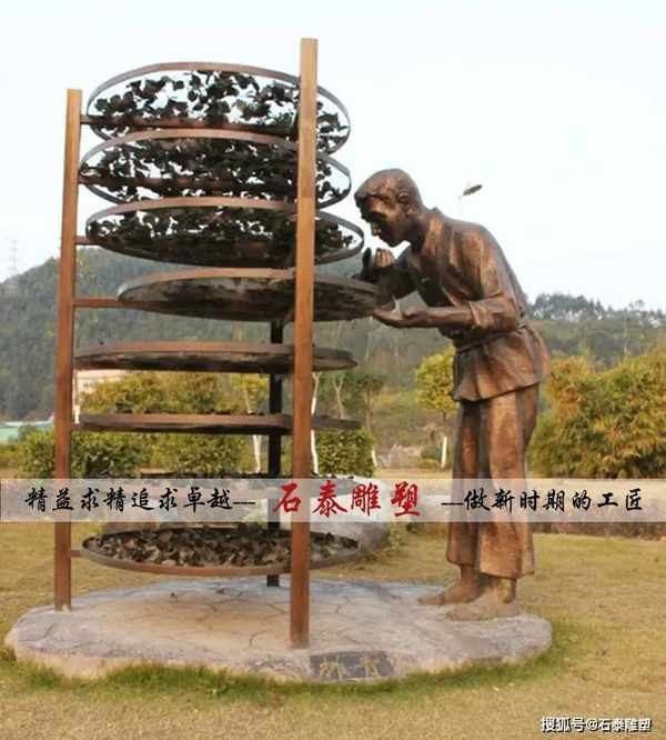 制茶流程雕塑,茶文化小品,銅雕人物