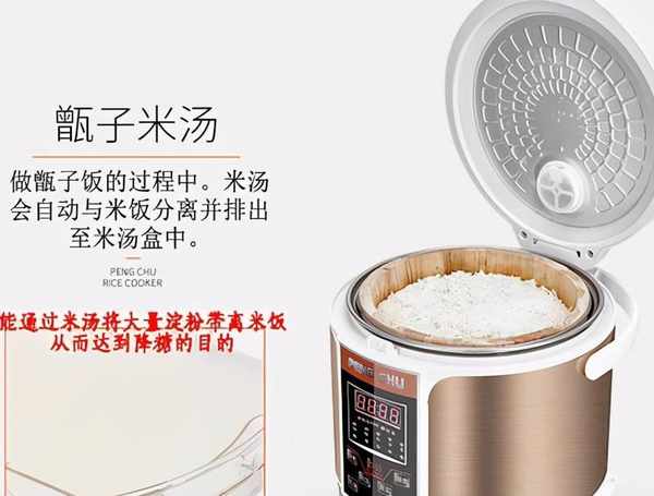 首先瞭解一下降糖電飯煲的工作原理。簡單說降糖電飯煲的工作原理就是在米飯煮到半熟的時候,有一部分淀粉會被溶解到湯中,蒸格會把米湯瀝掉,帶走一部分淀粉,再把半熟的大米進一步蒸熟。在清洗大米和蒸煮米飯的過程中,確實會去除掉一部分淀粉,但是究竟能去除多少淀粉,食用降糖電飯鍋做出來的米飯究竟能降低多少血糖,目前還沒有特別權威的檢測報告,很多都是商傢自己編制的“檢測報告”,權威性不足。