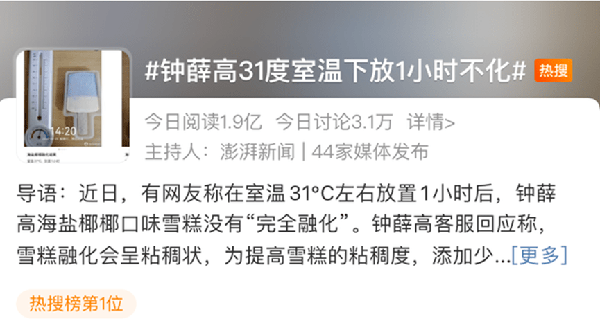 鐘薛高面對這種事情,即時用科學數據和曬出雪糕配方出面澄清,並回應烤雪糕本就非科學判斷雪糕好壞的科學方法。