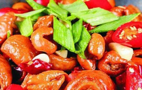 4.鍋裡放油,倒進切好的肥腸開始翻炒,倒一點黃酒繼續翻炒,少許白酒也行的炒幾下以後放進薑蒜翻炒,再放小辣椒老抽隻需幾滴,來改改色,別太多註意用量,否則顏色太深就沒那麼好看瞭,生抽適量調一下味,再放入小勺子白糖提鮮然後再放洋蔥,等到洋蔥炒到七八成熟,這個時候加入大蒜,翻炒幾下就可以出鍋瞭,
