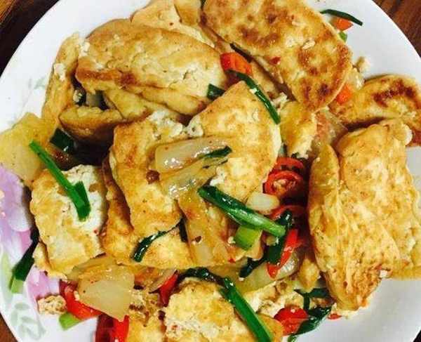 材料: 水豆腐250g、洋蔥 50g、韭菜 3棵、朝天椒2個生抽15ml料酒15ml白糖5g鹽少許
