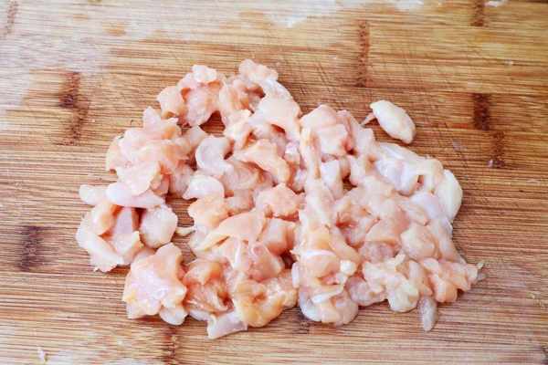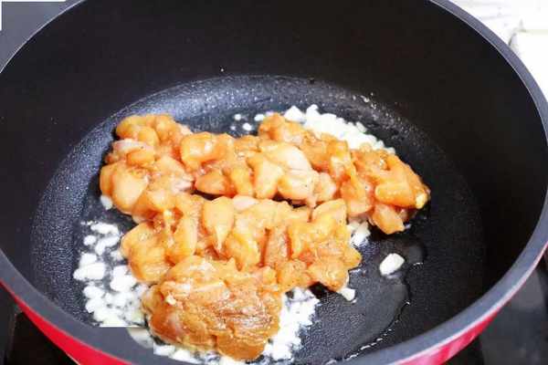 1.雞胸肉洗淨切成丁。放入容器中,加入1大勺料酒,1大勺生抽,1小勺鹽,1小勺胡椒粉,1中勺澱粉,抓勻醃用。