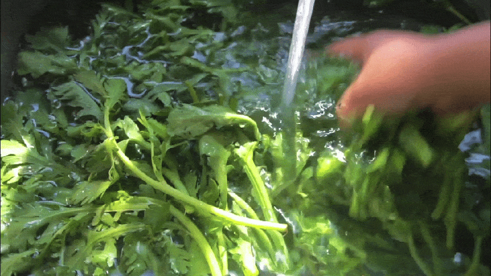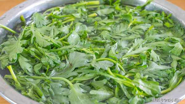 2、茼蒿清洗好後再放在盆裡,加淡鹽水浸半個小時,可以有效的清除茼蒿中所含有的農藥化合物。