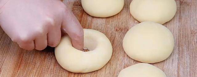 4.二十分鐘之後,劑子拿起來會輕飄飄胖乎乎的,用手指在中間給它戳一個洞,放置一邊備用;