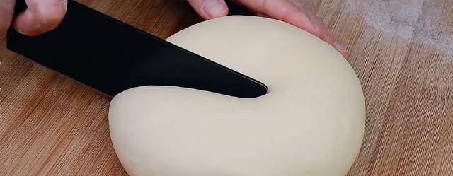 2.案板上撒一些幹面粉防粘,醒發好的面團體積會明顯的變大,裡面還會有很多的小氣孔,把面團放在上面反復的揉搓排氣,在邊緣切下一個小口,把它搓成小條,然後下均勻的劑子(建議劑子不要下的太大,避免下鍋之後不容易熟);