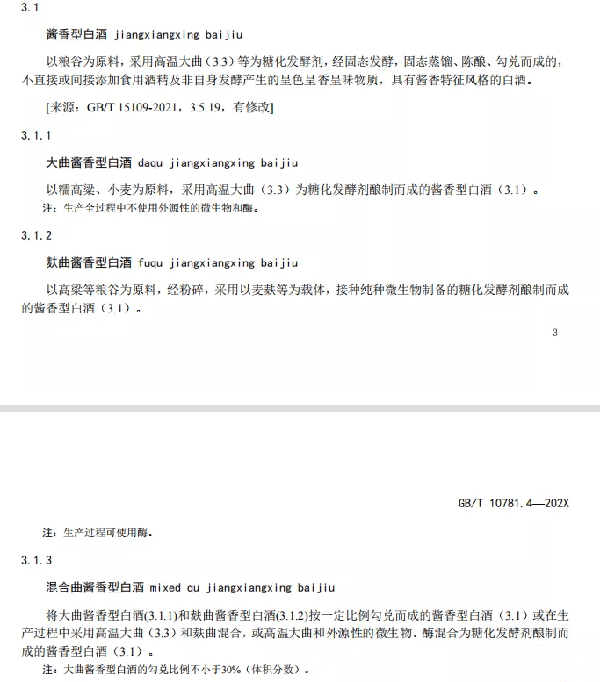 醬酒新國標征求意見稿對醬香型白酒進行瞭重新定義,並增加瞭大曲醬香型白酒、麩曲醬香型白酒、混合曲醬香型白酒的定義。