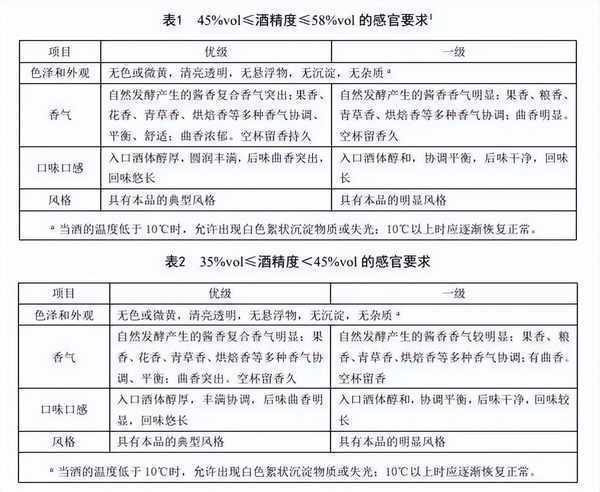 此外,醬酒新國標征求意見稿改變瞭將大曲為糖化發酵劑生產的醬香型白酒分為優級、一級、二級;不以大曲或不完全以大曲為糖化發酵劑生產的醬香型白酒分為一級、二級的分級方法,而是讓不同糖化發酵劑生產的醬香型白酒同臺競技,統一以優級、一級進行劃分。
