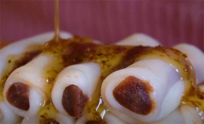 10.這個條頭糕軟軟的,上面一層是剛熬好的桂花糖漿,特別好吃,輕輕一扯就能扯出好長,這個糯米面團特別的柔軟而且很筋道,吃起來甜甜糯糯的,尤其外面加瞭桂花糖漿,味道真是絕瞭,喜歡的朋友一定得做一些嘗嘗。