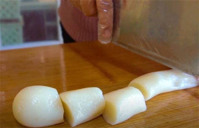 5.時間差不多到瞭,咱這個糯米面團也蒸好瞭,取出來,把這個糯米面團稍微的搗一搗,搗碎瞭先放涼。