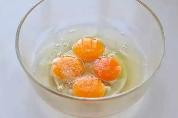 將雞蛋磕入碗中,按照個人口味調入適量的鹽,柴雞蛋會比養殖蛋稠,那就再加入兩湯匙的清水,然後攪打均勻備用。
