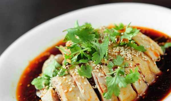 我做這個用的是雞大腿,當然整隻雞,雞小腿都是可以的。之所以用雞腿肉,是因為肉質比較嫩。煮雞腿的時候,要熱水下鍋,這樣的肉質比較緊致,如果是冒血水的話就冷水下鍋。水開後放入雞腿,後續就要用中小火煮,如果一直大火的話,雞皮就煮爛瞭。蘸料調多少無所謂,重點是比例,醬油:醋:香油:糖:味精的比例是2:2:1:1:0.5,我們傢不吃味精,所以沒有放味精。蔥薑蒜的比例可以根據自己的口味調整。於謙老師是將雞肉撕成條,蘸著吃,有些人是撕好拌著吃,這個也根據自己喜好調整。【於謙老師的白斬雞做法】【食材】:雞腿1隻,蔥段,薑片,大蒜,八角,香葉,醬油,醋,香油,糖,味精。
