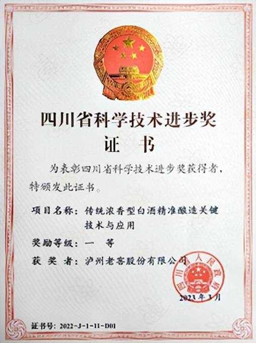“傳統濃香型白酒精準釀造關鍵技術與應用”成果獲得四川省科學技術進步獎一等獎,是在新一輪科技革命和產業變革背景下,瀘州老窖在智能釀造領域取得的一項重大突破,確立瞭瀘州老窖在白酒行業的智能釀造標桿地位,標志著瀘州老窖進入智慧釀造新時代。