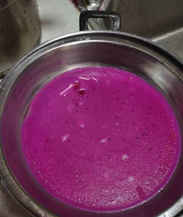 如果想來點五顏六色的涼皮那也是可以的,我就買瞭一個火龍果。榨汁機打碎,紗佈過濾。