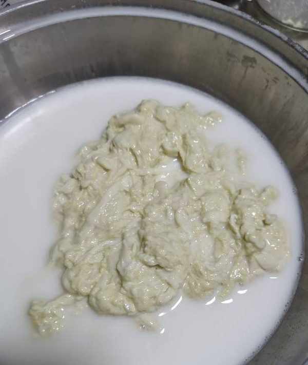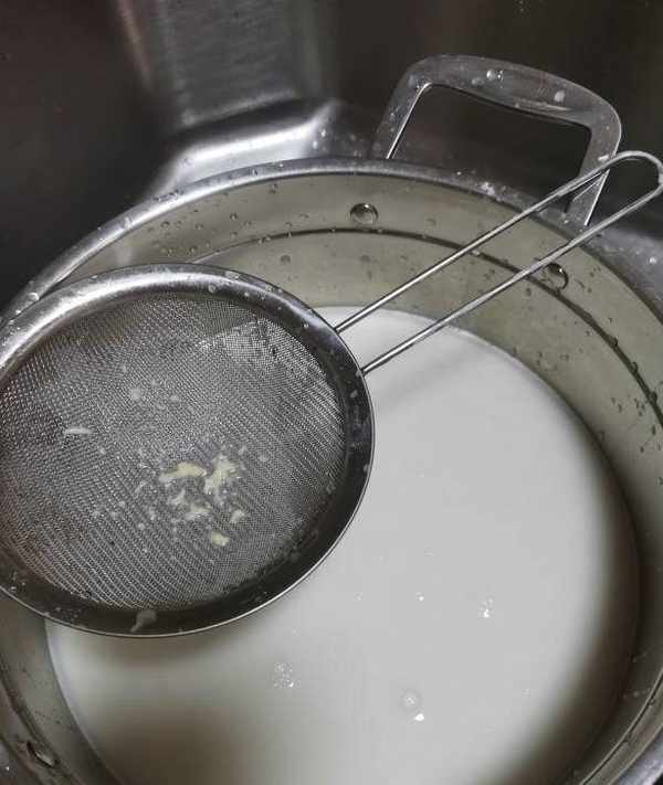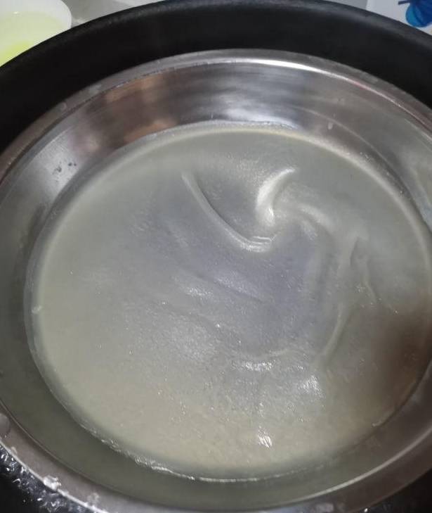 洗出的面水,放在容器裡,靜置至少四個小時以上,直到上層是水,下層是面糊為止。