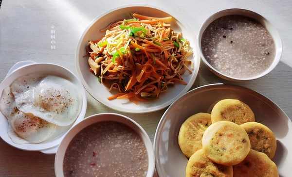 一、雜糧粥+玉米面梅幹菜餡餅+胡蘿卜炒豆腐絲玉米面餅子是一種鄉村粗糧主食,小時候母親常做,有時包餡有時不包餡,有時又做成疙瘩煮在米粥裡。粗糧細做香酥味美好吃又健康。
