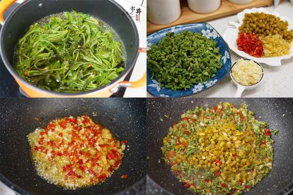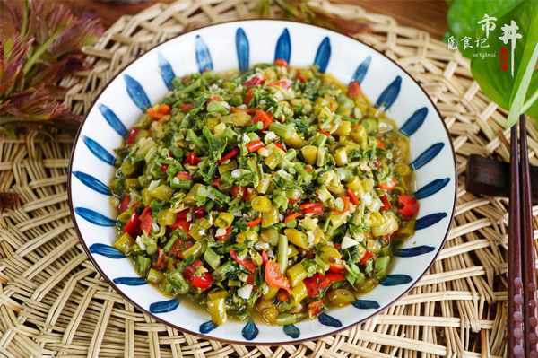 所需食材:香椿、青紅泡椒、泡豇豆。