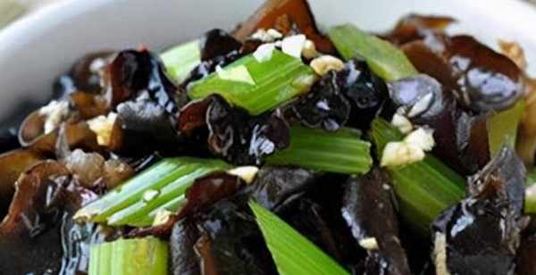 材料:西芹200g、東北黑木耳50g、鹽適量、蒜適量、生抽適量、香醋