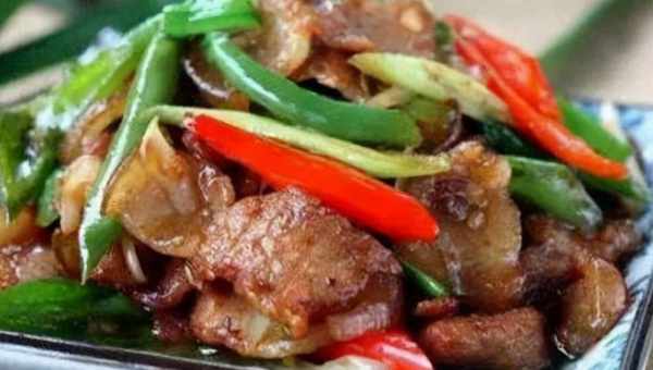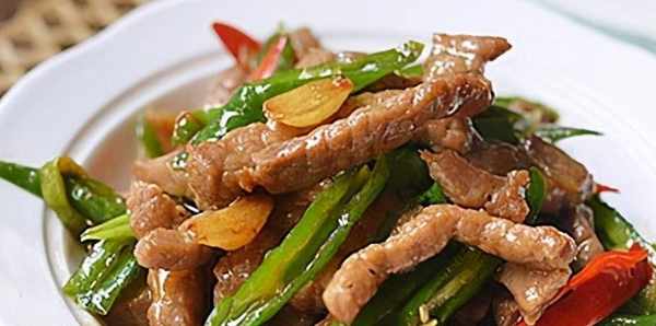 炒至杭椒斷生變軟時加入炒好的牛肉。