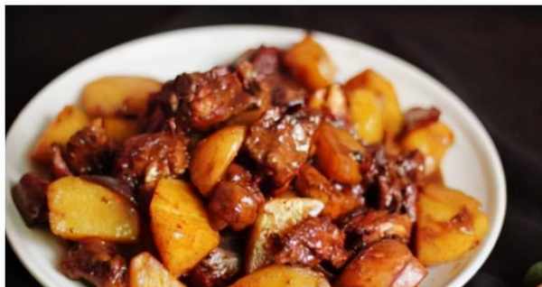 5、土豆去皮洗凈切成塊,香菇洗凈切成塊,倒入鍋中,繼續燉煮20分鐘;