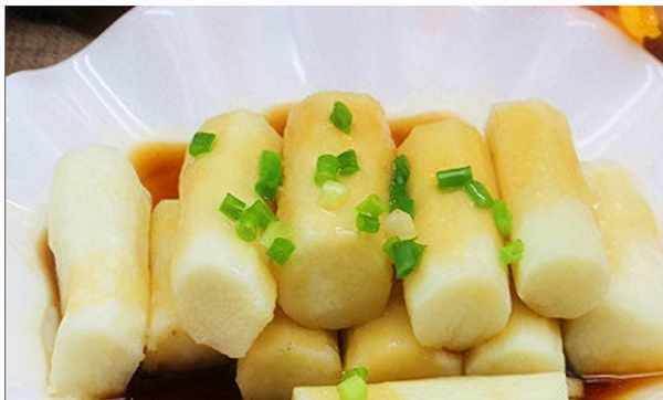 4、將醬汁淋在山藥上,撒上小蔥即可。
