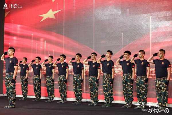 分享結束後,劉喜來再次登臺,帶領兵哥哥們一起打瞭一套軍體拳,展示屬於兵哥的精神風貌。整齊的步伐,嘹亮的口號,剛勁有力的軍體拳,每個動作都充滿瞭自信,每一句吶喊都詮釋著底氣。