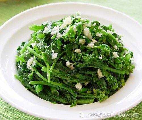 3、 青菜苔炒熟即可關火,出鍋前再撒入少許蒜末,趁著鍋中熱氣翻炒均勻,這樣炒出來的青菜苔蒜香濃鬱,特別好吃。