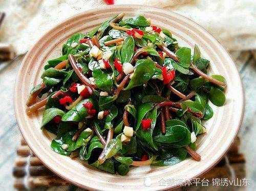 【食材】:馬齒莧 適量、鹽 1小勺、醬油 1勺、醋 1勺、薑蓉 適量、蒜蓉 適量、