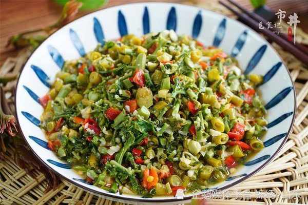 所需食材:香椿、青紅泡椒、泡豇豆、大蒜、食鹽、雞精。