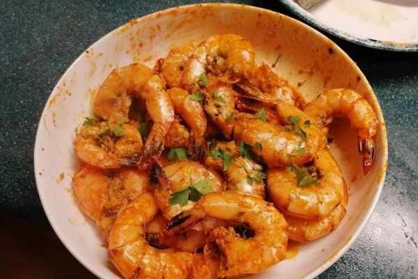 食材:大蝦10尾、大蒜3瓣、意大利香料、檸檬汁2匙、辣椒1根、奶油20克、葡萄酒100毫升、香菜一些、鹽適量、胡椒適量