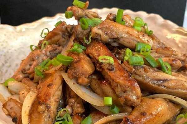 食材:雞翅適量、洋蔥適量、醬油1匙、蒜末2匙、胡椒粉1匙、鹽1匙、米酒1匙