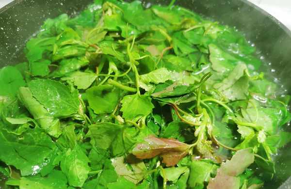 1.首先準備新鮮的馬齒莧500克,放在水中洗凈。炒鍋內放入適量的清水大火燒開,水燒開後把準備好的馬齒莧放進去,汆燙20秒後立即撈出。放入冷水中空涼。