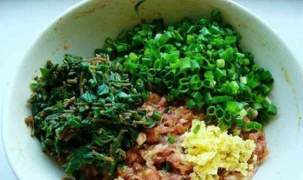 準備食材:馬齒莧、豬肉餡、蔥、薑、精鹽、十三香、食用油。