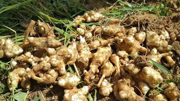 洋薑的一種多年生草本植物,長得跟向日葵有點看類似,開出來的花和菊花差不多,所以它還有一個名字叫菊芋,它是以地下塊莖供食,果實的形狀跟生薑非常相似,這可能就是洋薑這個名字的來源吧,我們這裡把它叫做江北芋艿,春季的時候播種,秋春季節就可以采收瞭。我們在采收的時候,故意留下幾個洋薑,讓它埋在土裡,第二年不用去管理,就能長出鬱鬱蔥蔥的一片,所以洋薑基本上一年種植,每年都能收獲。