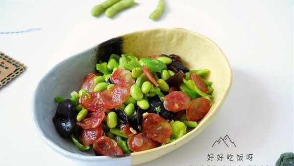 食材:毛豆,辣椒,廣式臘腸,木耳