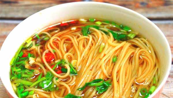 4,面條煮好後直接撈入碗中,舀入面湯,加一勺鹽,一勺香醋,幾滴醬油,攪拌均勻以後就可以開吃瞭。