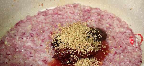 2、鍋裡倒入適量的油。油熱之後放入洋蔥炒出香味,然後加一勺番茄醬,一勺豆瓣醬,一勺黃豆醬,一勺蠔油,一勺白芝麻,一勺五香粉,一勺淀粉,一勺孜然粉,小半碗清水,然後將調料充分地炒均勻,把香味完全炒出來。