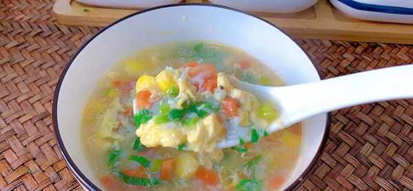 主要食材:山藥、青菜、胡蘿卜、玉米粒、雞蛋、小蔥花