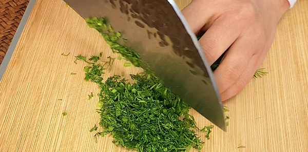 2、準備一點茴香,清洗幹凈之後,切掉根部,然後再把它切成碎末。攤煎餅加點茴香,吃起來還真是美味。