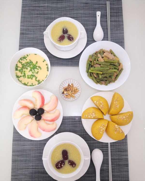 南瓜饅頭和粥都屬於碳水,應控制好總攝入量,避免能量超標影響體重和健康,再搭配雞蛋、動植物蛋白、少量水果和堅果,營養更全面。