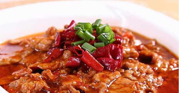5、將肉片在鍋中搖勻,燒開,煮好後取出,盛入盤中,撒上辣椒粉和花椒面,倒入滾油即可食用。