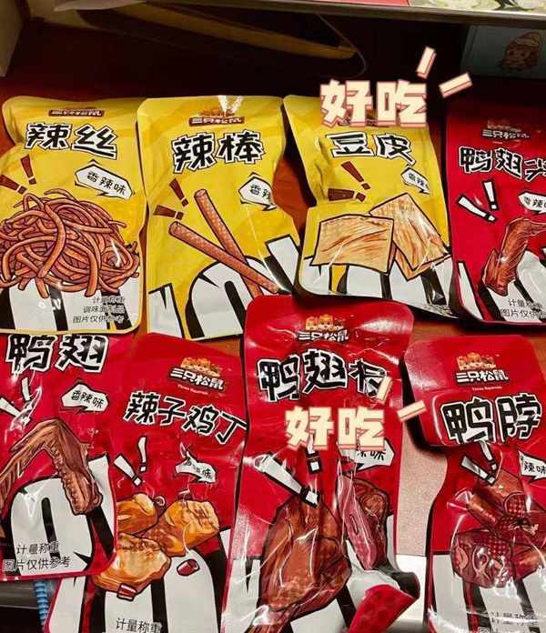 首先是大品牌品質有保證,其次就是它裡面的種類非常多,素的有香辣味豆皮、拉絲和辣棒,而肉的種類就比較多瞭,有辣子雞丁、鴨翅、鴨翅尖、鴨翅根和鴨脖,讓你換著口味吃,味蕾不乏膩。