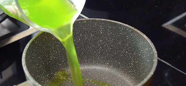4.把黃瓜汁轉移到鍋中,開小火煮一會兒。