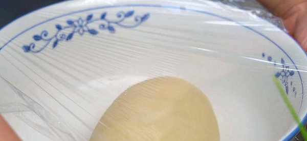 7.下手揉成表面光滑的面團。蓋上保鮮膜密封醒面半個小時。