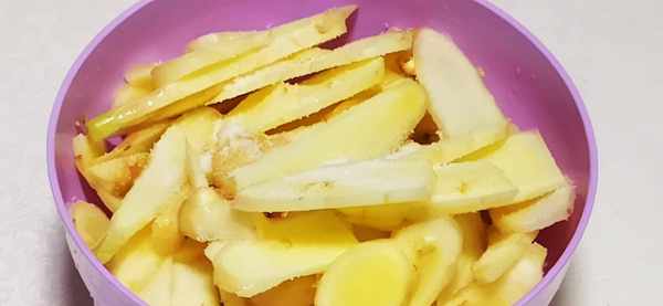 1、將仔薑用流動的清水給它清洗幹凈,再將洗凈的仔薑芽掰開,切成薄片,放入碗中。再把薑片裡放入一點鹽,(鹽按照自己喜歡的量來加),拌勻,醃制2個小時。