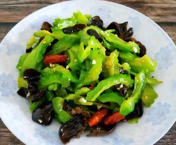 準備食材:苦瓜、木耳、鹽和醋等。
